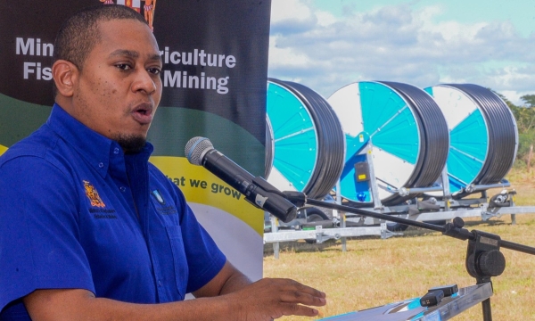 Addressing the handover ceremony for seven irrigation travellers to the Bodles Agricultural Research Centre in St. Catherine on January 29, Agriculture, Fisheries and Mining Minister, Hon.